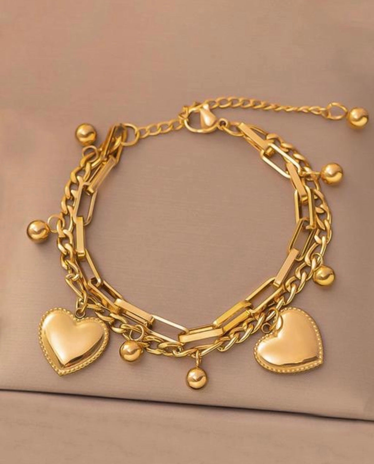 Gold Heart Charm Layered Bracelet