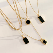 The deep, opaque black of the onyx provides a sophisticated contrast against the reflective gold finish. It is a versatile unisex piece, often categorized as a "statement" accessory that works equally well for casual everyday wear or more formal outfits.